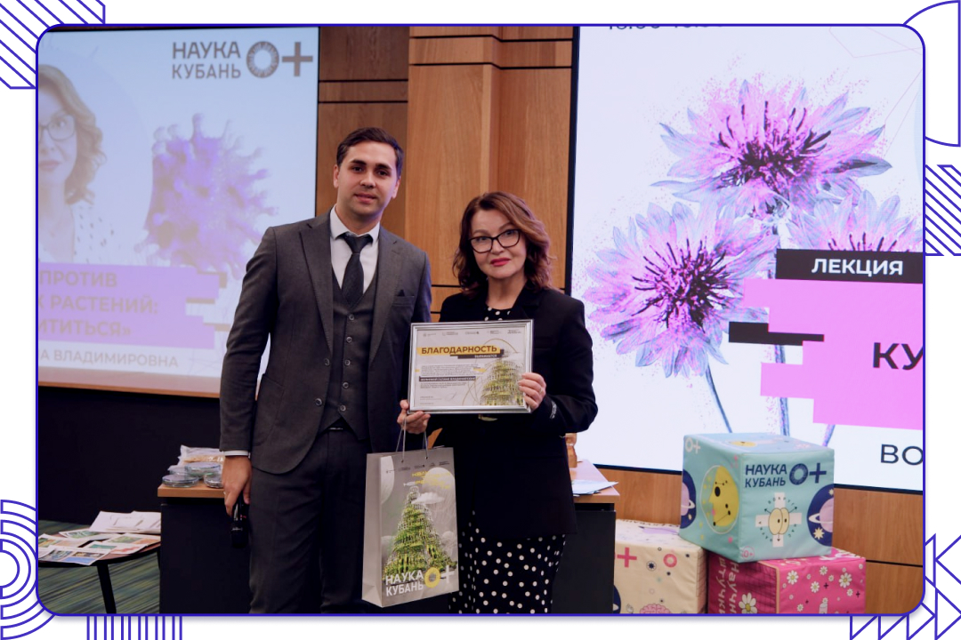 В ходе открытой научно-популярной лекции "Грибы против культурных растений: как защититься" Галина Владимировна простыми словами объяснила участникам лектория "Кубань научная", организованного в рамках фестиваля «НАУКА 0+ Кубань», как защитить урожай.